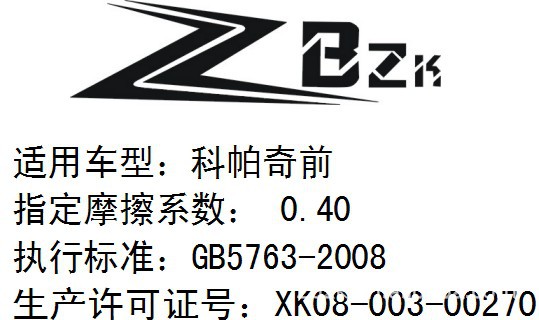 价格优惠耐磨低噪音科帕奇前陶瓷刹车片