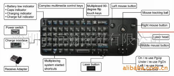 2.4G迷你键盘 带鼠标激光笔 三合一功能