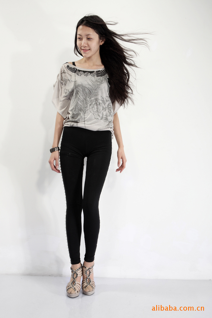 韩版弹力小脚裤 钉珠装饰 纯色松紧腰打底裤 针织修身显瘦