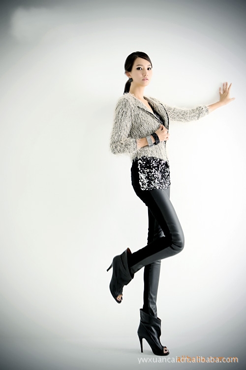 低价热销 欧美大风范 仿皮拼接九分打底裤/打底裤