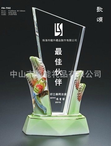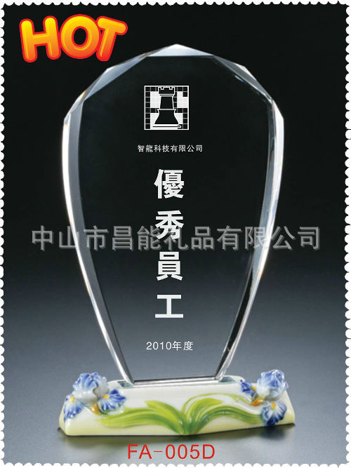 高档水晶奖牌 陶瓷水晶牌 高档水晶授权牌 中山新款水晶奖牌
