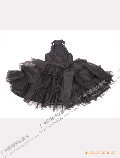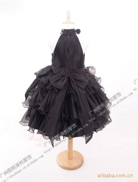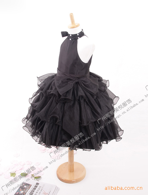 现货高贵黑色童礼服!镶钻挂脖东方韵味设计!