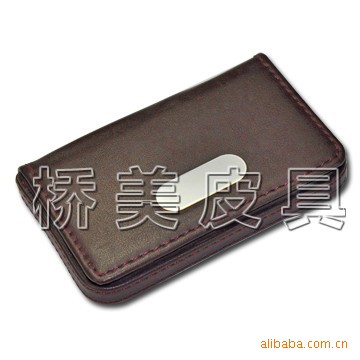 中高档商务皮具礼品及套装,不锈钢裱皮名片夹,真皮名片夹