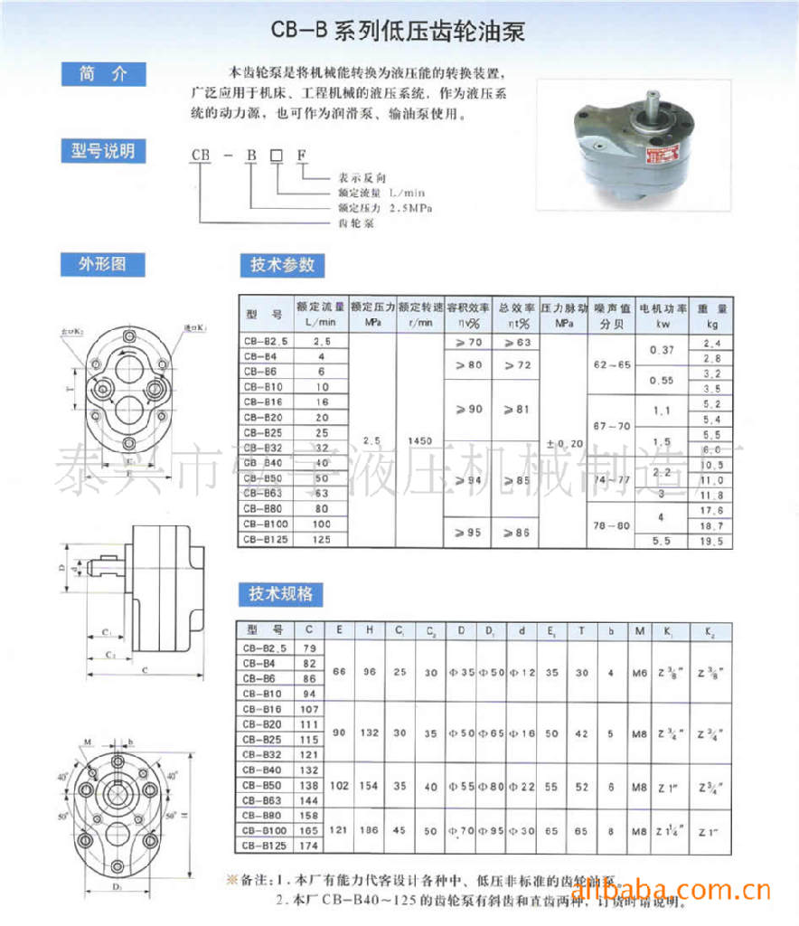CB-B6F 反向齿轮泵