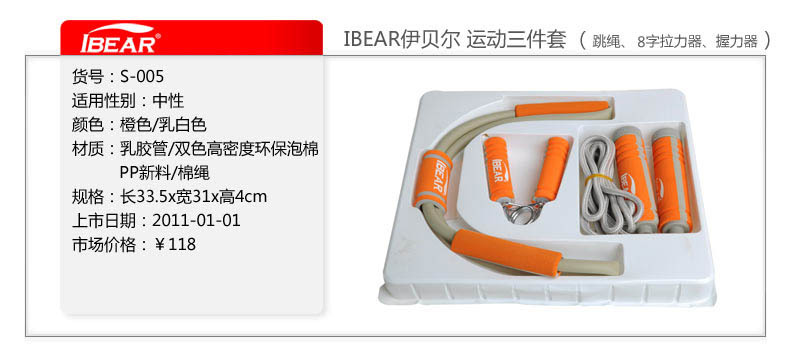 IBEAR伊贝尔 运动三件套(8字拉力器、握力器、跳绳) S-005