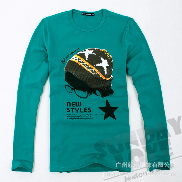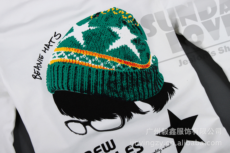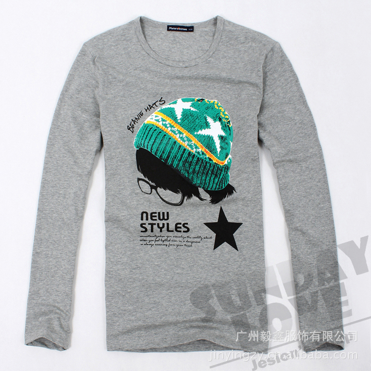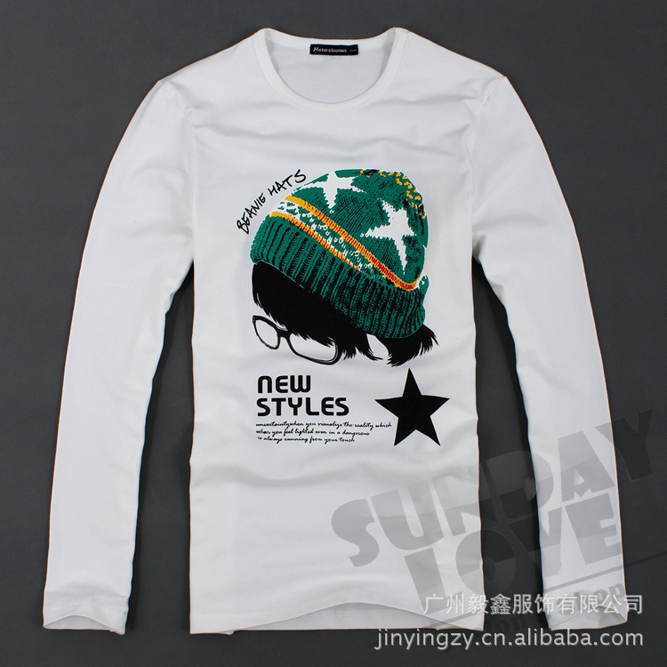 美特斯邦威男士长款T恤 学院风帽子图案T恤