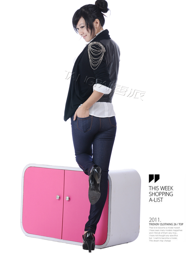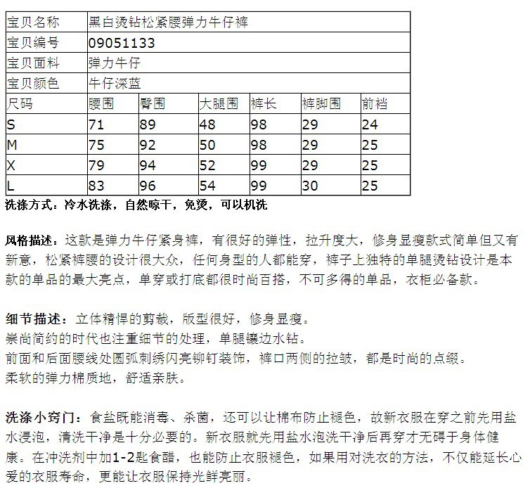 厂家供应打底裤批发 韩版黑白烫钻松紧腰弹力牛仔打底裤批发