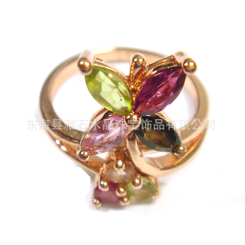 925银玫瑰金天然碧玺‘姊妹花’戒指 戒指 水晶礼品