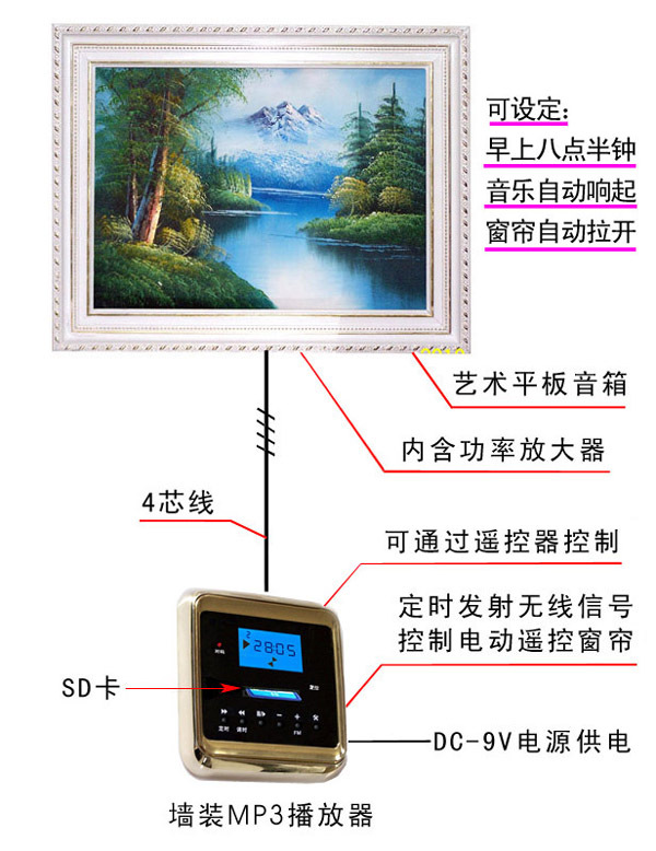 家庭 背景音乐 MP3 定时器 收音机 早晨音乐响起窗帘拉开