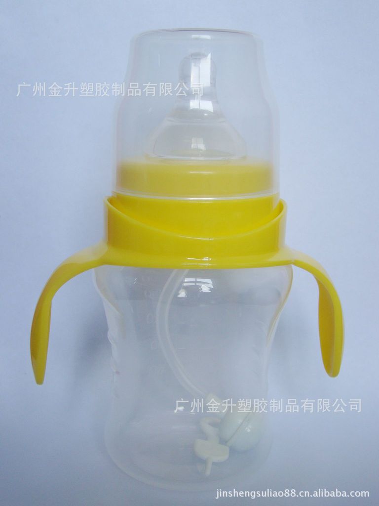 专业厂家供应宽口带柄婴儿安全pp奶瓶 210ml