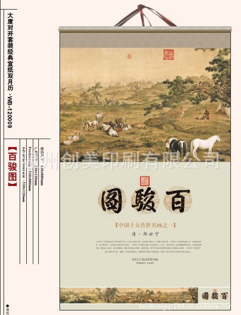 2012年套装经典宣纸双月挂历 传世名画之一百骏图