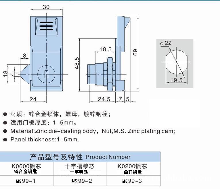 MS99防水锁,电气箱门锁,配电箱门锁,防水机箱锁