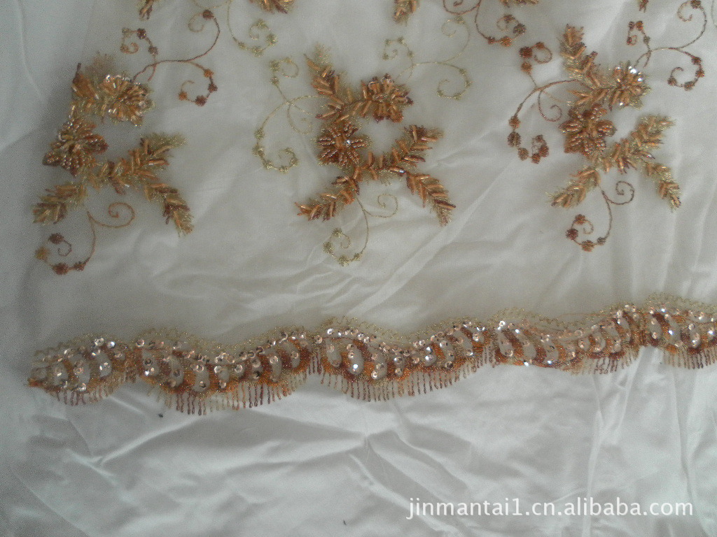 厂家直销手工盘带加手工串珠绣花面料,婚纱,服饰,家居,手提代