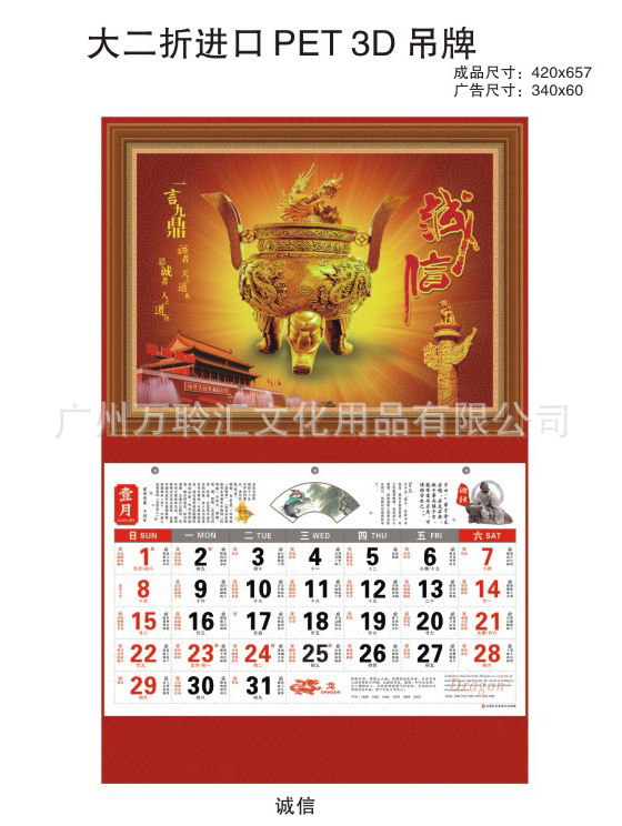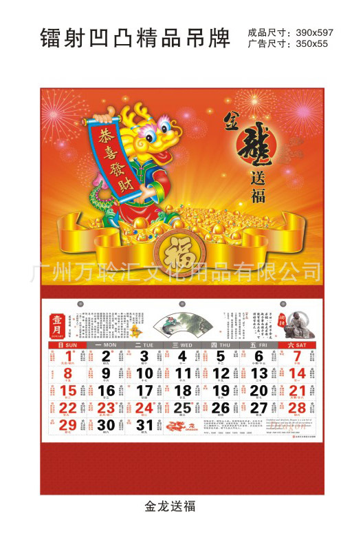 饰品、工艺品、礼品 > 节庆婚庆用品 > 挂历 >