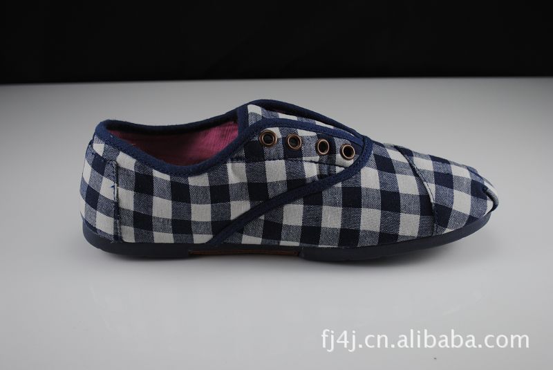 TOMS 帆布鞋 系带款 蓝色格纹 可贴牌