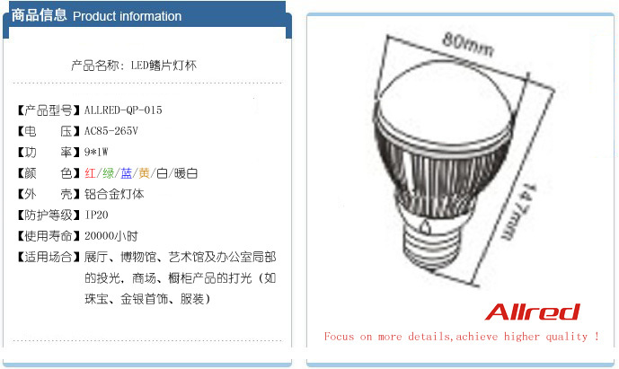 欧瑞特品牌-LED鳍片灯杯/射灯/球泡灯 9*1W