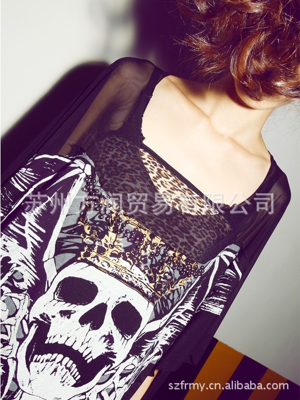 2012年新款秋装女装网纱骷髅头长袖T恤
