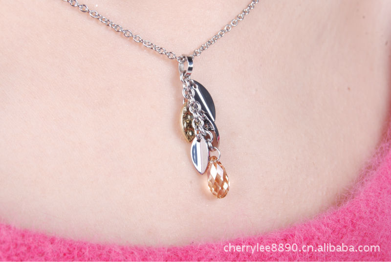 外贸人工合成澳宝石时尚首饰 多色掌形欧泊项坠925银女式项链