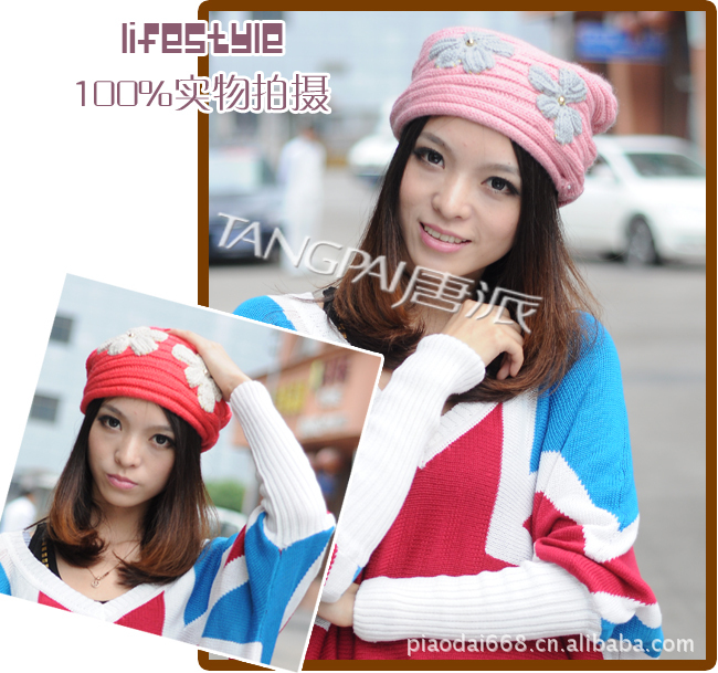 01021104唐派秋冬女士新款时尚个性手工卷边针织帽 六色供选