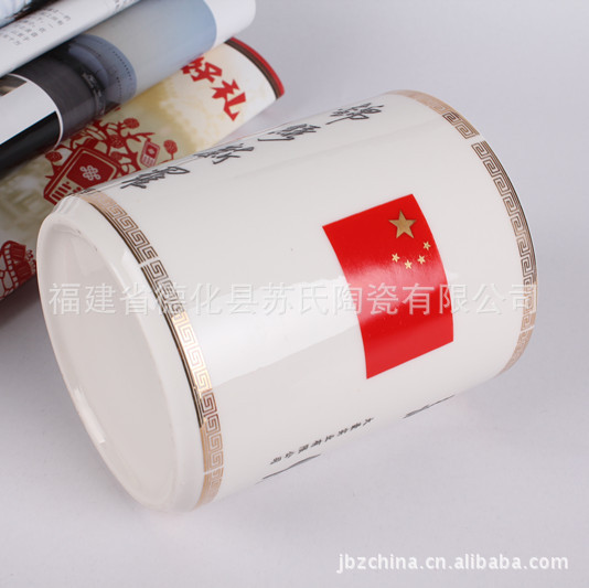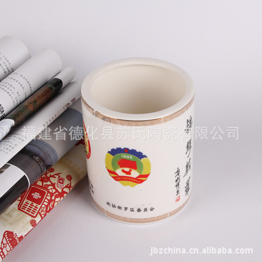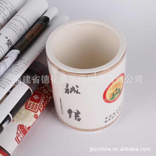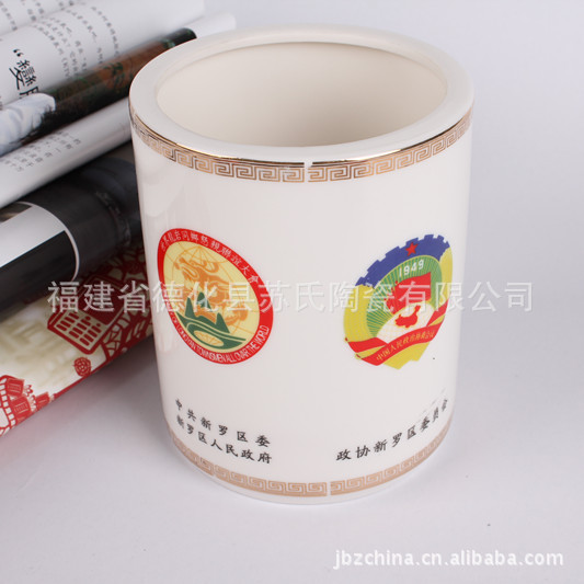 新品推荐高档办公陶瓷笔筒 定做陶瓷办公礼品 金边陶瓷笔筒