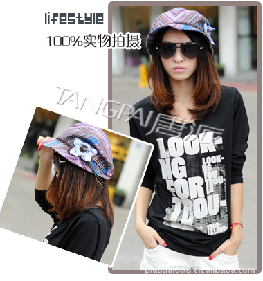 01021113唐派秋冬款热销日版波西米亚花帽 甜美可爱彩格淑女帽子