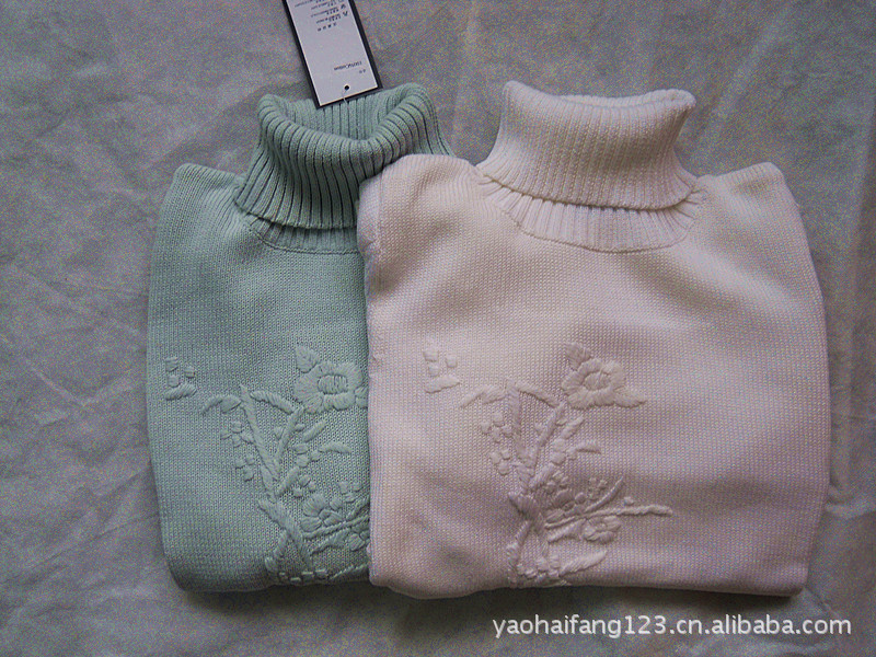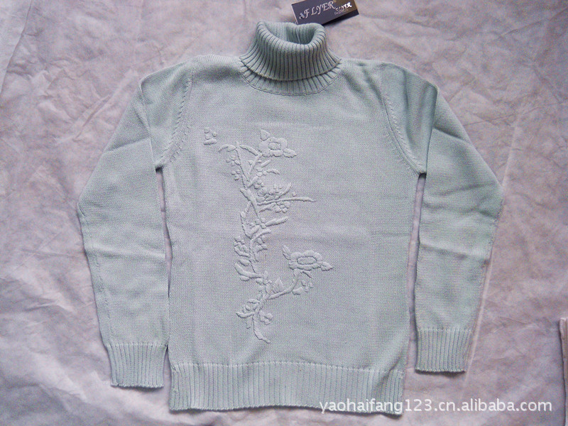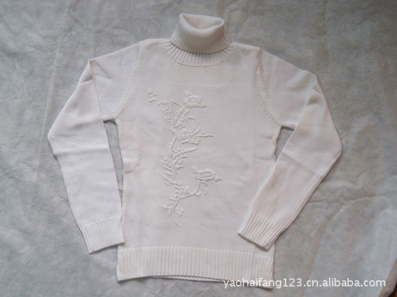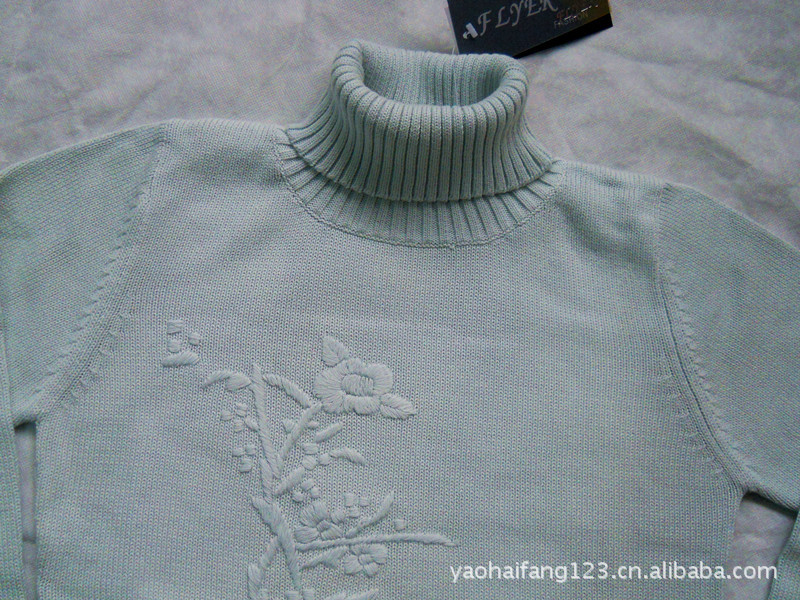11厂家库存冬季女款全棉高领手工绣花打底保暖针织衫