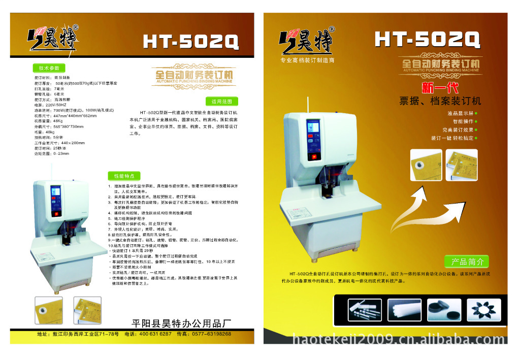 昊特HT-502Q全自动财务装订机 液晶彩屏显示 28秒完成装订