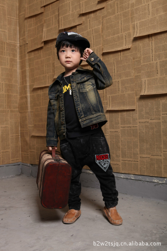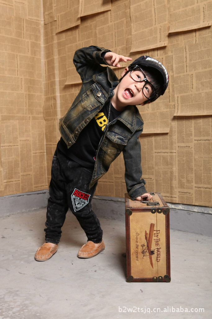 日韩外贸童装 做旧复古 超酷口袋系扣款 古铜色牛仔衣