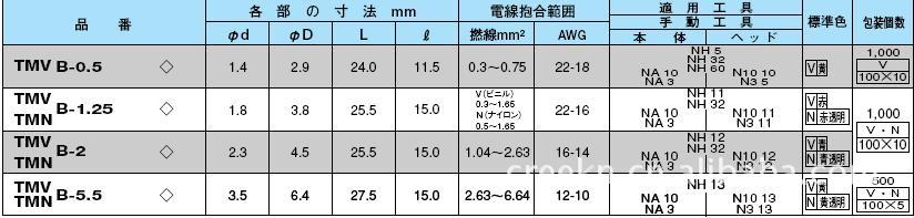 日本日富端子NICHIFU品牌TMV绝缘套管TMV B-1.25