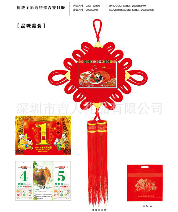 日历 2012新年日历 绒线传统中国结全彩通胜择吉双日历