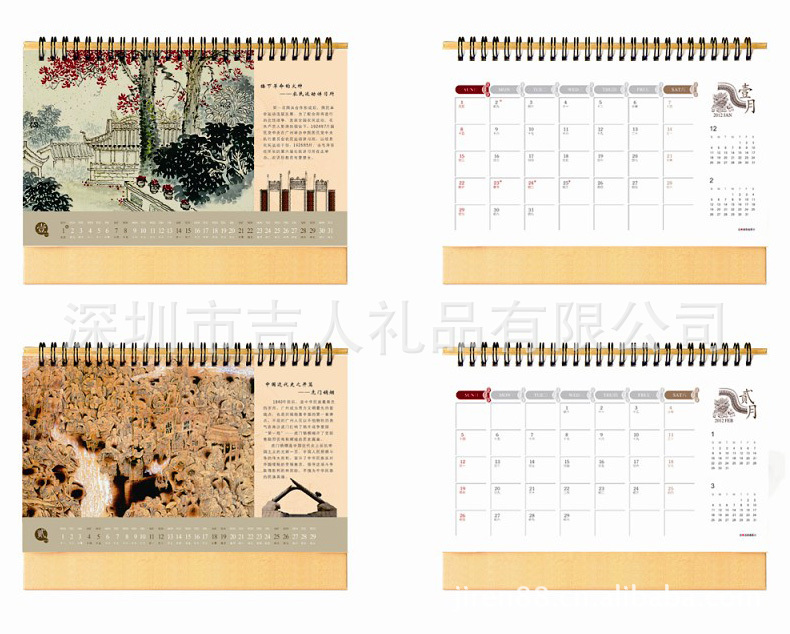 个性桌摆红木台历批发,甘肃保险公司台历挂历定做印字