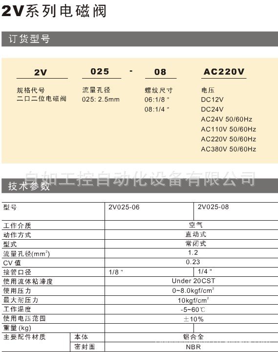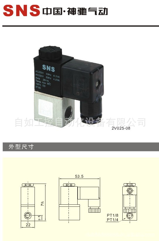 批发价供应sns 神驰气动2V025-08 2V025-06电磁阀 山耐斯全系列
