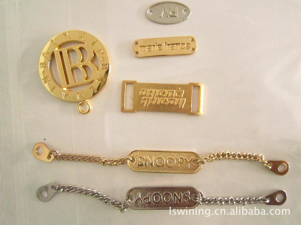 金色圆形,长方形,蛋形箱包牌,服装扣,可印LOGO,五金牌厂家
