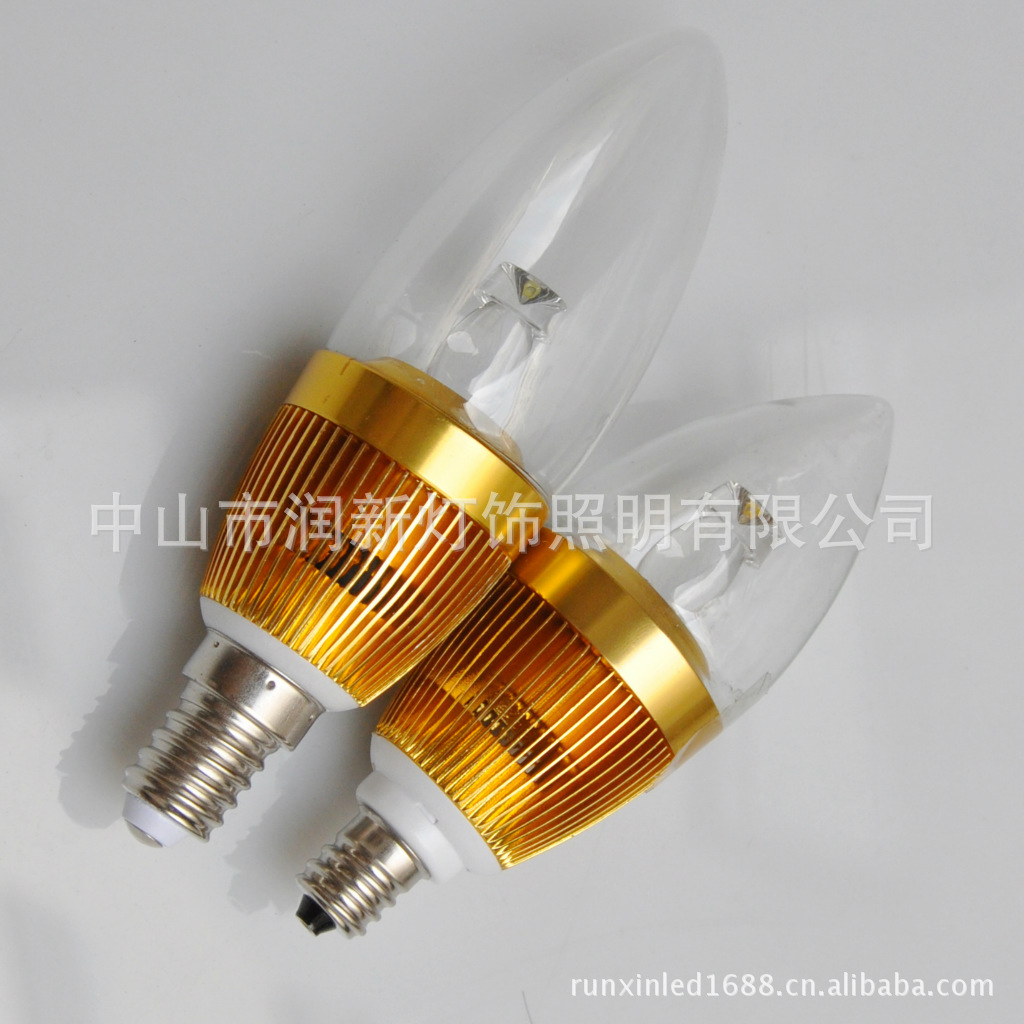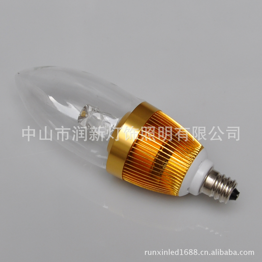 批发供应3W E14小螺口 LED蜡烛灯泡 水晶尖泡 带导光柱