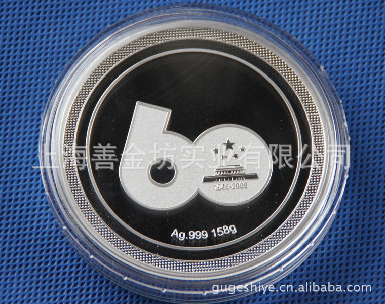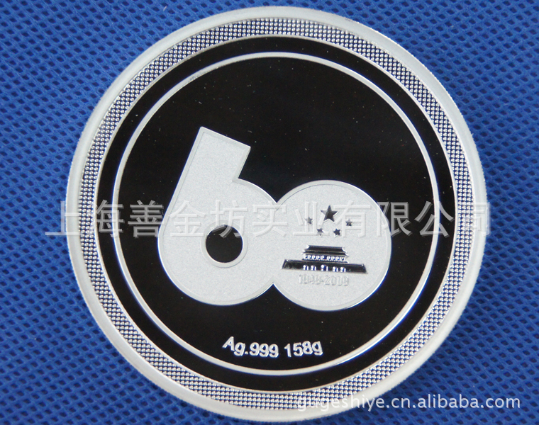纪念章定制 定做金银章 木盒加工 中国电子纪念章 建国60周年银章