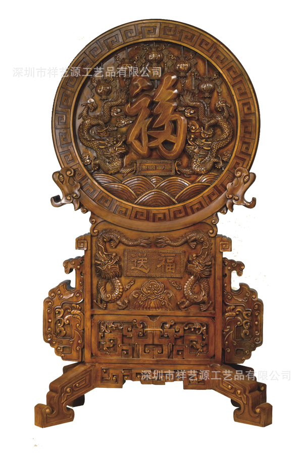 送福圆盘(图)屏风工艺品铁木纹