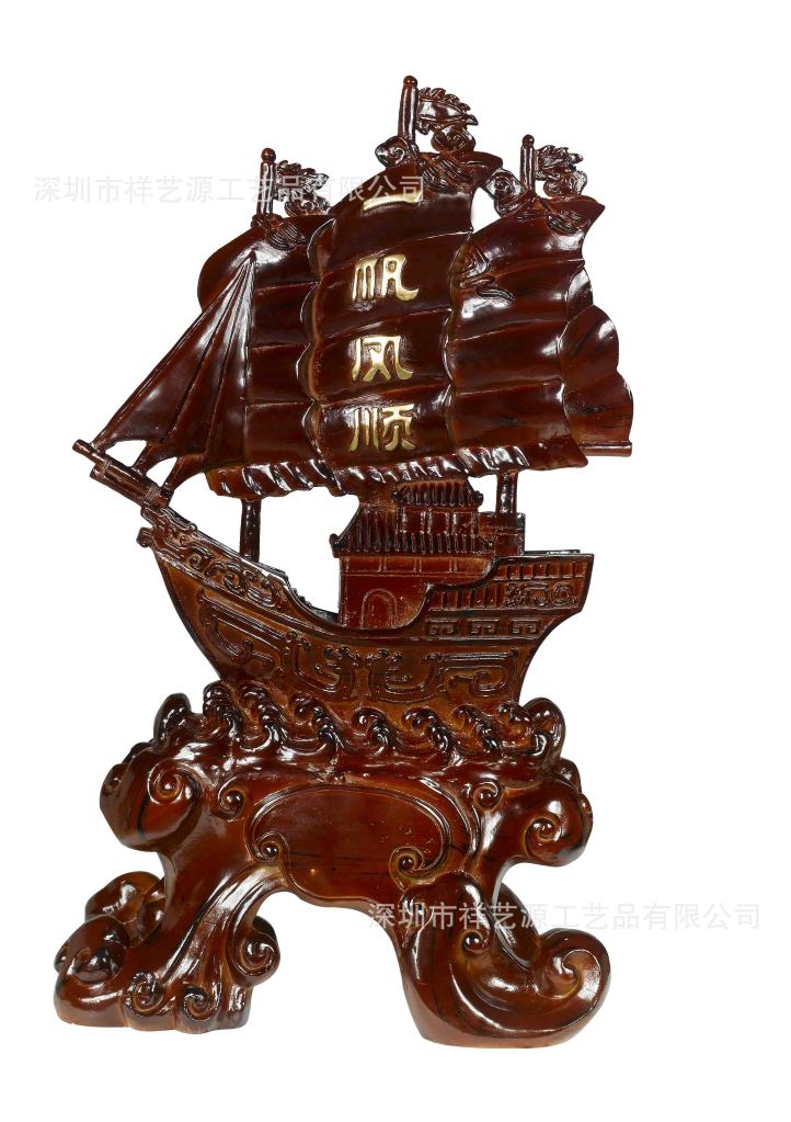 一帆风顺(图)船工艺品红木仿古铜