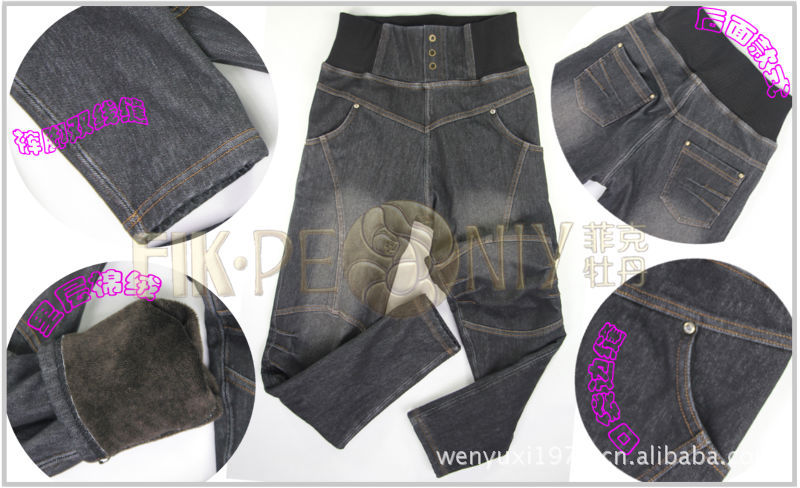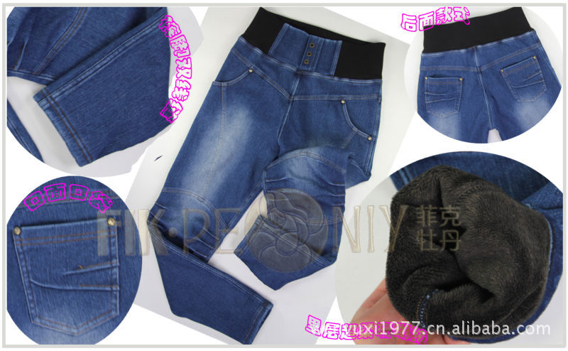 批发供应冬款时尚超柔珊瑚绒女士水洗牛仔保暖裤ARB-2909