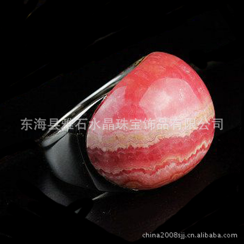 戒指 925银镀白金天然红纹石大扳指
