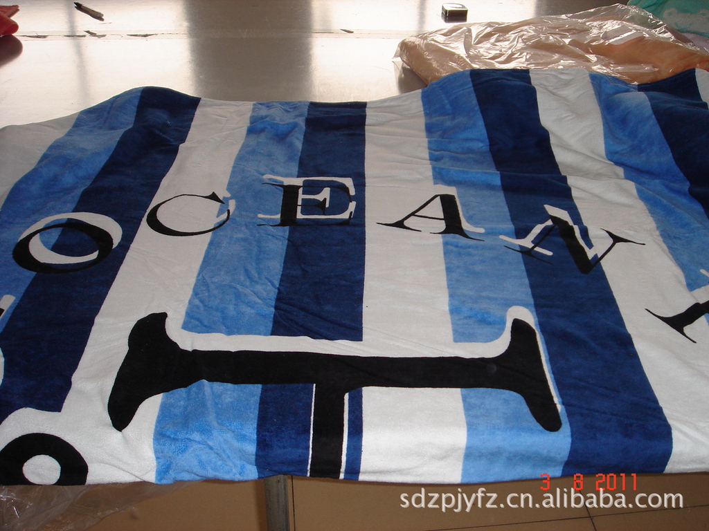 印花蓝条纯棉毛巾被毛巾毯180*200*1415克