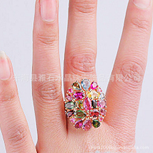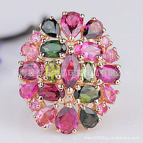 碧玺戒指 925银镀玫瑰金天然碧玺椭圆双生四叶花戒指