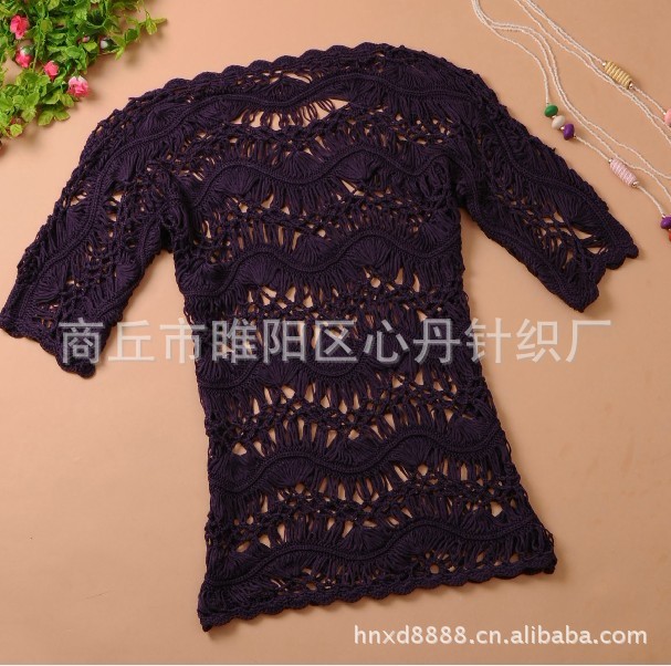 五分袖针织衫 手钩针织衫 淑女上衣 春秋时尚舒适上衣 货号:AH