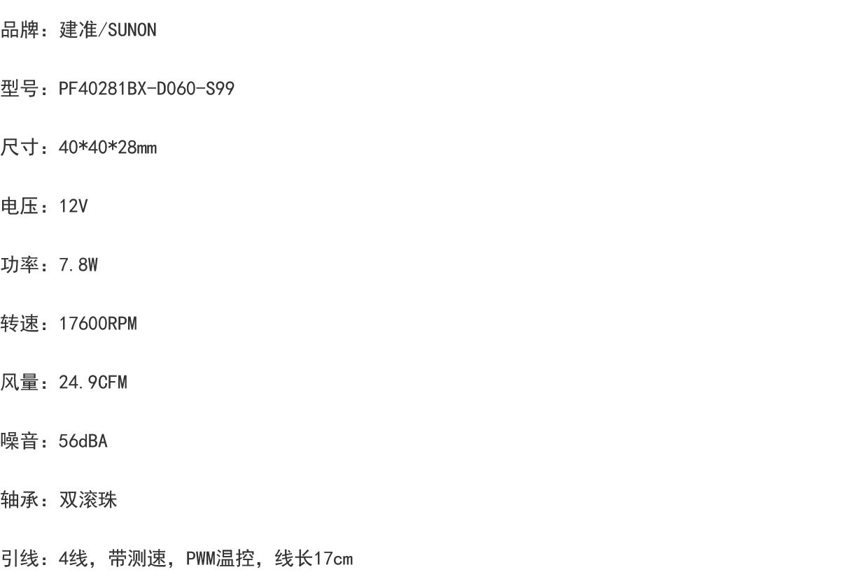 PF40281BX-D060-S99 12V 7.8W 4CM建准散热风扇