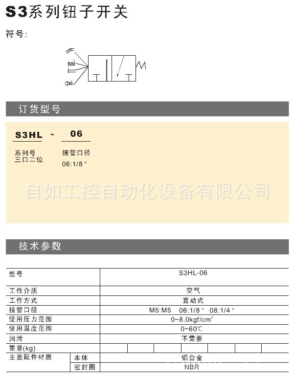 柳市价批发SNS神驰气动 S3HL-06纽子开关