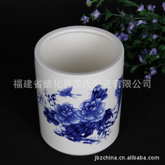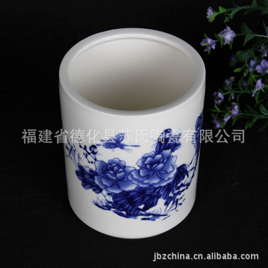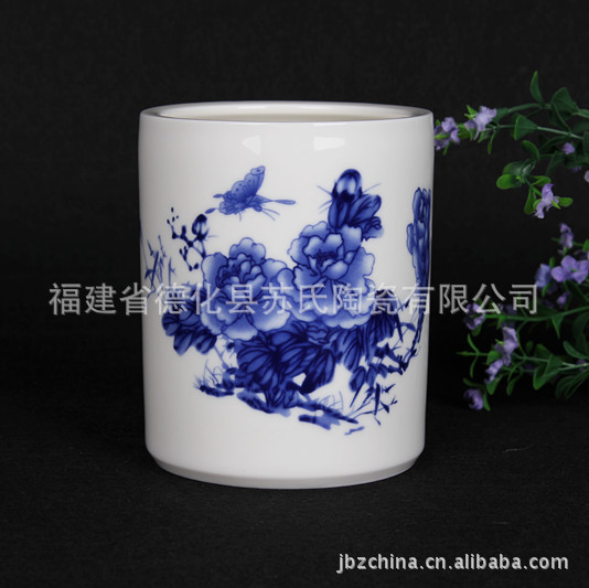办公礼品套装 青花陶瓷笔筒 创意礼品陶瓷 办公文具笔筒