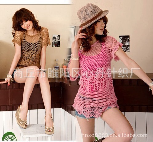 新款夏季女装时尚针织手钩镂空性感可爱圆领针织衫 货号:AAA