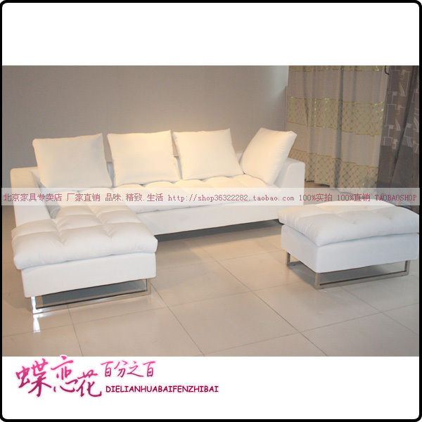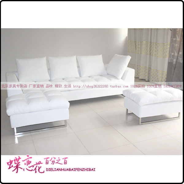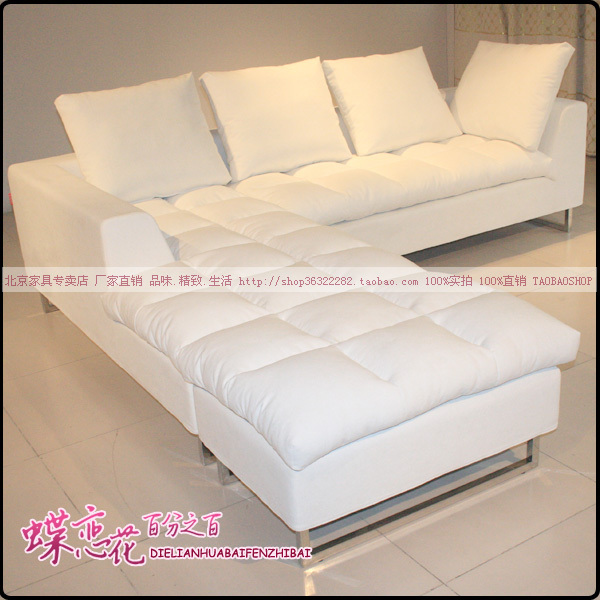 白色羽绒布艺转角加踏可拆洗沙发 专业定制金属腿时尚风靡沙发店