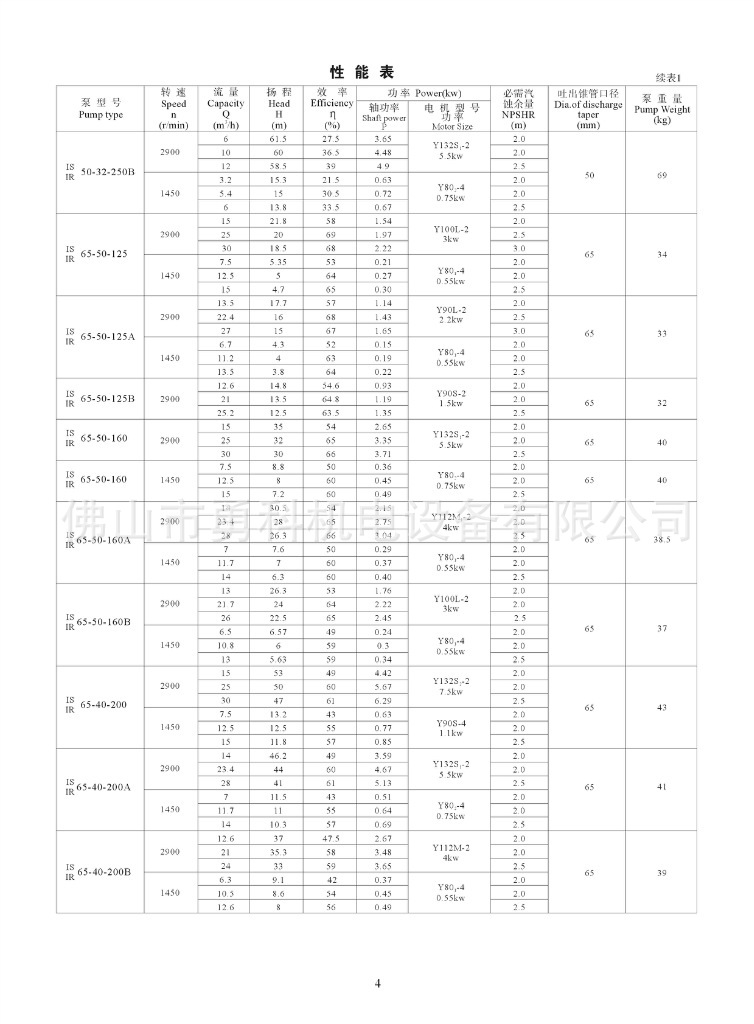 东达IS系列离心泵之IS65-50-125-Y100L-2-3kw