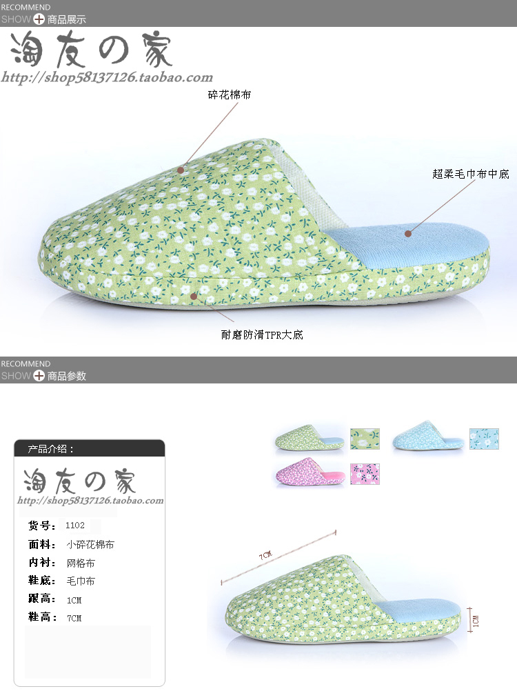 小碎花冬季地板拖 保暖拖鞋 家居用品 居家拖鞋批发 棉拖鞋厂家