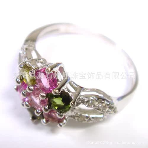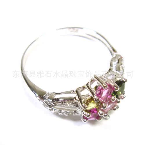 碧玺戒指 戒指 925银镀白金天然彩色碧玺‘一朵梅花’戒指